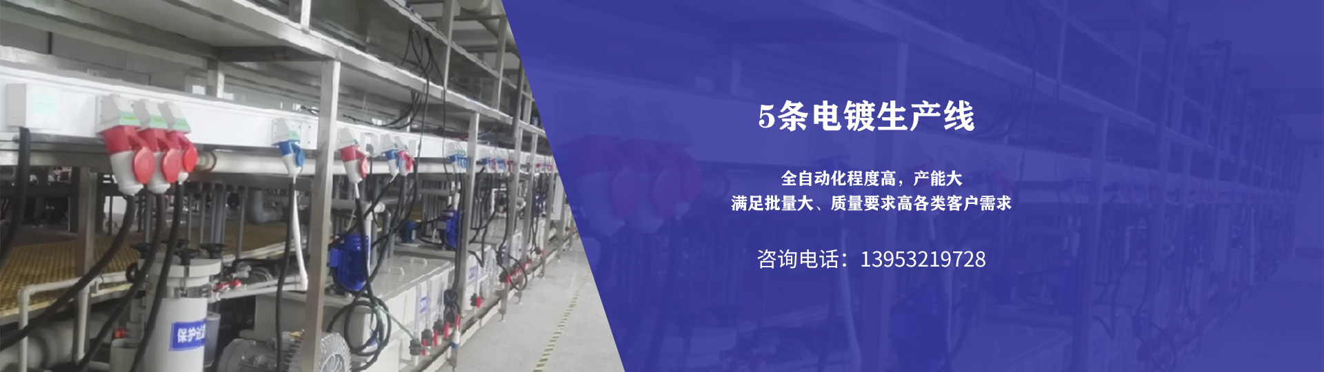 公司共有5條電鍍生產(chǎn)線,其中一樓:1條酸鋅自動(dòng)線,1條堿鋅自動(dòng)線,1條裝飾鉻生產(chǎn)線,二樓:1條垂直鍍鎳鍍錫自動(dòng)線,1條U型鍍鎳鍍錫自動(dòng)線一條,全自動(dòng)化程度高,產(chǎn)能大,滿足批量大、質(zhì)量要求高各類客戶需求。